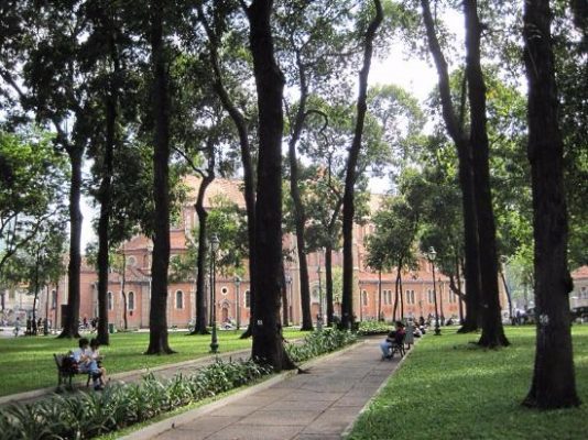 Khu vực xung quanh Nhà Thờ Đức Bà – Dinh Độc Lập – Bưu Điện Trung Tâm là điểm hẹn hò ưa thích của giới trẻ. Chọn chỗ ngồi hợp lý, nơi có bóng mát và tầm quan sát rộng, lấy tờ báo cũ trải xuống nền đất để ngồi “bệt” và cứ thế thưởng thức cà phê mà không cần quán xá. Mặc dù không phải là chốn quá riêng tư, nhưng dưới tán cây sum suê và ly đồ uống bình dân trên tay, câu chuyện của 2 bạn sẽ không biết đến khi nào mới kết thúc. Xung quanh công viên 30/4, 2 bạn có thể ghé thăm Dinh độc lập, Bưu Điện Trung Tâm, nhà thờ Đức Bà, Diamond Plaza… hay tản bộ trên những con phố đẹp nhất trung tâm Sài Gòn. Đặc biệt thứ 7, chủ nhật rất đông các bạn trẻ tụ tập đàn hát rất dễ thương, 2 bạn vừa có thể tám đủ chuyện vừa được nghe nhạc miễn phí rất tuyệt vời.