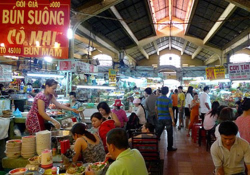 Là hình ảnh đại diện quen thuộc của Sài Gòn, Chợ Bến Thành luôn là nơi tập trung lớn các mặt hàng thủ công mỹ nghệ, dệt may, áo dài, lưu niệm… Đây cũng là khu chợ có khá nhiều món ăn dân dã vốn quen thuộc như bún riêu cua, bún bò, bánh canh, bún thịt nướng… khá đông đúc. Tuy nhiên, khác với lại khu phố Tây, khu vực này lại không hấp dẫn thực khách bởi giá cả rất đắt. Nơi này đôi khi còn xảy ra tình trạng “chặt chém” khách du lịch nữa cơ.