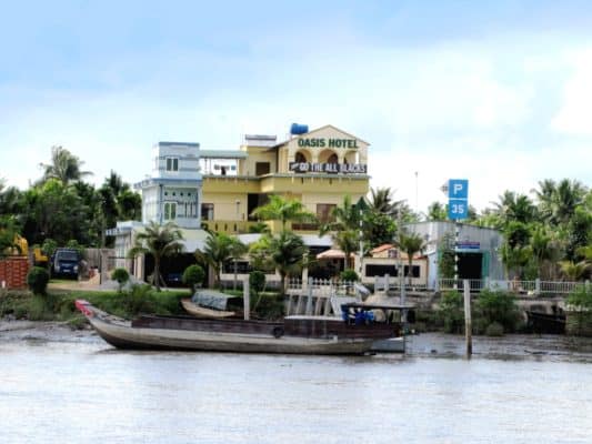 Khách sạn Oasis Bến Tre chỉ là một khách sạn nhỏ nằm tọa lạc bên bờ sông yên tĩnh đối diện thành phố Bến Tre. Đây vốn là khách sạn gia đình do cặp vợ chồng đến từ New Zealand xây dựng và có quyền sở hữu. Không gian thanh bình với mặt trước là khung cảnh sông nước, mặt sau là khung cảnh nông thôn Bến Tre sẽ rất thích hợp cho những ai yêu thích sự thanh bình đậm chất Bến Tre.