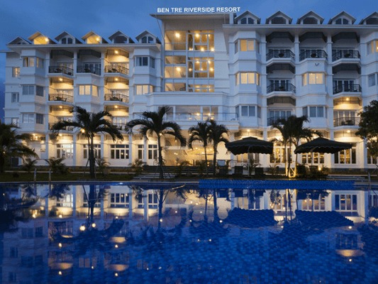 The Riverside Resort Bến Tre là khu nghỉ dưỡng sang trọng nằm trên ngã ba sông Hàm Luông đạt chuẩn 4 sao của tỉnh Bến Tre. Vị trí này đã giúp cho các du khách nghỉ ngơi tại The Riverside Resort Bến Tre được tận hưởng không khí trong lành và thanh bình hiếm có. Bên cạnh view tuyệt đẹp, 81 phòng nghỉ tại đây cũng được trang bị khá tiện nghi nhưng vẫn đảm bảo sự gần gũi với thiên nhiên khi một số đồ nội thất được làm từ dừa.