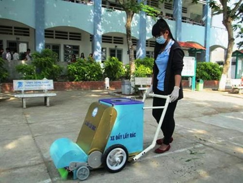 Em Trương Thị Uyển My, học sinh trường THPT Tân Hồng, Đồng Tháp chính là chủ nhân của mô hình sáng chế xe đẩy vừa quét vừa hốt, gom rác một cách hiệu quả. Mô hình này không sử dụng động cơ nổ cho nên không tốn nhiên liệu cũng như không gây tiếng ồn khi vận hành. Công cụ này được cho là sẽ hỗ trợ đắc lực cho các công nhân vệ sinh.