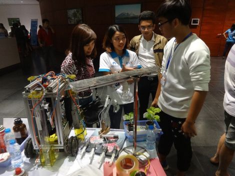 Mô hình “Thu gom nước mưa và bổ sung nhân tạo nước dưới đất” được thực hiện bởi 7 sinh viên Khoa Địa chất – Trường đại học Khoa học Tự nhiên – Đại học Quốc gia TP.HCM: Nguyễn Văn Cường, Đỗ Văn Cường, Lê Hoài Hân, Ngô Quốc Khánh, Trần Nhật Vy, Nguyễn Ngọc Thanh Vũ và Nguyễn Thị Thùy Dương.