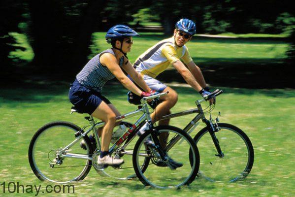 Một phương pháp tuyệt vời khác để đốt cháy năng lượng là đạp xe đạp. Đạp xe là một hoạt động thú vị giúp bạn giữ dáng cũng như có một vóc dáng cân đối. Không giống như chạy khi có thể bị áp lực lên đầu gối, đạp xe sẽ giảm tác động lên các khớp bằng sự trợ giúp của “máy cơ đơn giản”. Có một vài yếu tố bạn cần lưu ý nếu muốn đốt cháy càng nhiều calo trên chiếc xe đạp của mình. Bạn có thể lưu tâm đến yếu tố địa hình. Những ngọn đồi dốc giúp đốt cháy calo nhiều hơn hoặc thay đổi tốc độ trong quá trình đạp xe cũng rất hiệu quả. Tuy nhiên bạn phải chú ý đến phụ tùng của xe bởi đầu tư cho một chiếc xe đạp địa hình để giúp tập luyện là không hề rẻ. Và bạn hoàn toàn có thể chọn cho mình việc đạp xe trong nhà bằng một máy tập như trong hầu hết các phòng gym sẽ là một gợi ý hay cho bạn có ít thời gian để đạp xe bên ngoài.