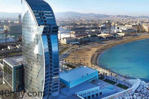 Thành phố Tây Ban Nha được biết đến không chỉ là các kiến trúc Trung cổ mà còn cả các kiến trúc hiện đại độc đáo. Khách sạn W, nằm trên bờ biển của Barcelona, là một ví dụ lý tưởng của sự tiến bộ trong kiến trúc hiện đại. Thiết kế bởi Ricardo Bofill và hoàn thành trong năm 2009, khách sạn 5 sao này được bao phủ bởi kính truyền ánh sáng tự nhiên. Khách sạn được thiết kế theo mô hình của một cánh buồm, nên nó còn có tên gọi là Hotel Vela (khách sạn cánh buồm), và cung cấp cho khách tầm nhìn ngoạn mục ra biển Địa Trung Hải từ phía sau bức tường kính.
