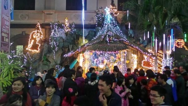 Nhà thờ Thái Hà cứ mỗi dịp giáng sinh đều được đánh giá là nhà thờ trang trí noel khá lộng lẫy. Những dây đèn led, hang động, cây thông treo đèn… với màu sắc vô cùng bắt mắt. Sự tinh tế trong thiết kế, trang trí đã khiến nhiều người tham quan thích thú.
