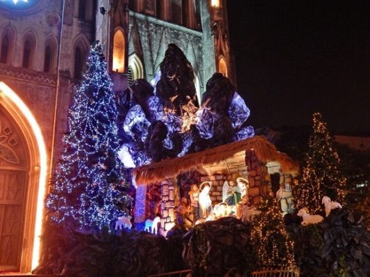 Tòa lâu đài Nhà thờ Lớn được vây quanh bởi những hàng cây lấp lánh ánh đèn, những cây thông rực rỡ ánh sao và những hang đá phía sau tôn lên nét đặc trưng của tín lễ tôn giáo. Nhà thờ Lớn quả thật là một nơi trang trí noel đẹp nhất ở Hà Nội. Và là tụ điểm thích hợp để các gia đình, bạn bè có thể đến tham quan, tham gia các hoạt động Công giáo, lưu giữ những khoảnh khắc noel ý nghĩa…
