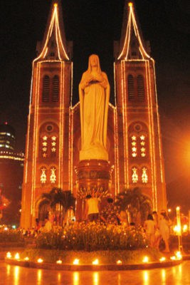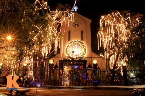 Trang hoàng bằng hàng nghìn ngọn đèn và hình ảnh ông già tuyết cưỡi tuần lộc, nhiều nhà thờ ở TPHCM rực sáng lung linh trước đêm Giáng Sinh. Bên trong nhà thờ được trang trí bởi những cây thông và hàng trăm dàn đèn nháy đủ loại màu, Khu vườn phía sau nhà thờ cũng được thắp sáng bởi nhiều đèn led tràn ngập ánh sáng. Hang đá belem, nơi Chúa ra đời được giăng đèn rực rỡ, những loại đèn kiểu dáng lạ tạo sự khác biệt so với những mùa Noel trước.