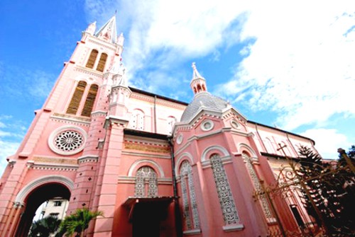 Nhắc đến công trình kiến trúc màu hồng lãng mạn trong lòng Sài Gòn, nhiều người sẽ nhớ ngay đến ngôi nhà thờ cổ Tân Định tạI quận 3 luôn đẹp rực rỡ và lộng lẫy dưới nắng đông của thành phố. Để chuẩn bị cho đêm giáng sinh năm 2016, nhà thờ đã được trang hoàng càng thêm lung linh hút hồn các bạn trẻ và du khách thập phương.