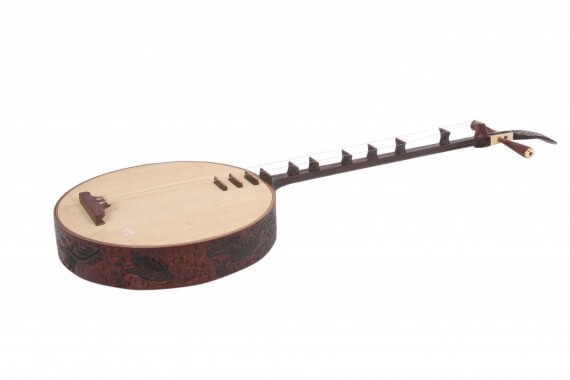 Mặt thùng đàn có hình tròn như mặt trăng, còn có tên là đàn Kìm. Thùng đàn có đường kính từ 38 đến 40 cm, dày không quá 8 cm. Phía cuối thùng đàn có gắn một cái thú vừa là ngựa đàn, vừa là chỗ mắc dây. Cần đàn làm băng gỗ cứng, dài 90 cm, trên gắn 10 phím cao cách nhau không đều.