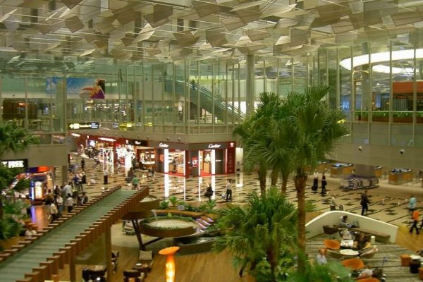 Diện tích khu vực mua sắm khoảng trên 100.000 mét vuông dọc theo 3 terminal. Các gian hàng này với mức độ kinh doanh vượt xa các khu mua sắm khác của Singapore, kể cả khu vực đông khách nhất là phố Orchard. Nhà điều hành hàng không dân dụng Singapore thu được khoảng 60% lợi nhuận từ hoạt động này (khoảng 600 triệu USD vào cuối tháng 3 năm 2015), với khoảng 30% từ diện tích cho thuê và chia tỉ lệ buôn bán. Rượu và nước hoa là các mặt hàng chủ yếu chiếm hơn phân nửa doanh số bán lẻ, kế tiếp là đồng hồ và thuốc lá. Bên cạnh nhiều cửa hàng miễn thuế và các hàng ăn, sân bay Changi còn có sáu khu vườn mở. Khách của sân bay có thể vào thăm các khu vườn này và mỗi vườn có một nhóm thực vật khác nhau: xương rồng, tre, heliconia, hướng dương, dương xỉ, và phong lan. Có nhiều trung tâm thương mại nằm xung quanh sân bay Changi. Khu vực quá cảnh quốc tế của các nhà ga số 1 và số 2 có cung cấp dịch vụ internet và các trò chơi, các khu giải trí, có các phòng cầu nguyện, phòng tắm, các thẩm mỹ viện, phòng tập thể dục thể thao, bể bơi và cả một khách sạn nữa. Có nhiều khu vực để khách ngồi chờ và một vài trong số đó còn có cả khu vui chơi dành cho trẻ em hoặc có ti vi với chương trình thời sự hoặc phim ảnh.