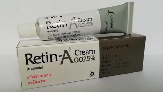 Tretinoin trong retin A khá mạnh nên có tác dụng trị mụn và ức chế vi khuẩn p.acnes phát triển, nhưng da lại bị khô nhưng giá rẻ, dễ mua.
