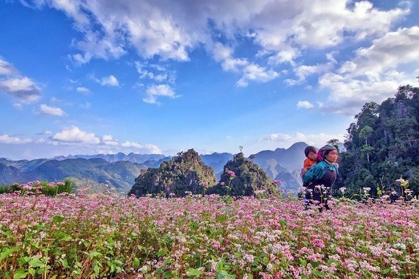 Hà Giang nổi tiếng với cao nguyên đá Đồng Văn cùng rất nhiều cảnh quan tuyệt đẹp khác. Đến với Hà Giang, du khách sẽ được chiêm ngưỡng vẻ đẹp rực rỡ của cánh đồng hoa tam giác mạch. Thời điểm thích hợp nhất là vào tháng 10 -12 hàng năm.
