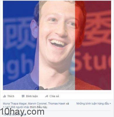 Facebook đã thêm chức năng thay đổi ảnh đại diện bằng cờ Pháp. Và hiện nay trào lưu thay đổi cờ Pháp này đã lan tỏa rất nhanh chóng trên mạng xã hội Facebook và nhận được sử ủng hộ và đồng cảm của nhiều người trên toàn thế giới. Cụ thể là CEO Facebook Mark Zuckerberg đã hành động đầu tiên thay đổi ảnh đại diện của mình bằng cờ Pháp trên Facebook. Với hành động này sau 20 giờ đẫ nhận được hơn 1 triệu like và hơn 10k lượt chia sẻ trên Facebook. Và hiện tại các bạn tại Việt Nam cũng đang hưởng ứng trào lưu này rất nhiệt tình và chúng ta nên làm như vậy.