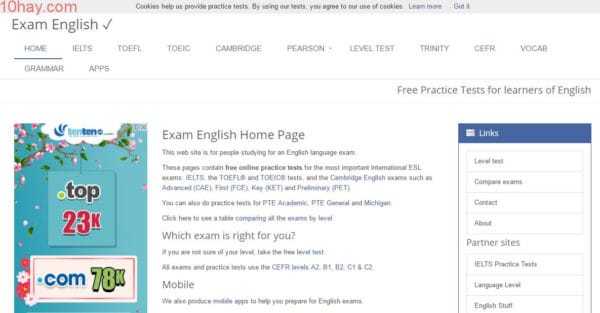 Tramh học tiếng anh qua rèn luyện từng đề thi chứng chỉ quốc tế như TOEIC, TOEFL, IELTS. Các bạn có thể thi thử và ôn thi khá tốt trên trang này.