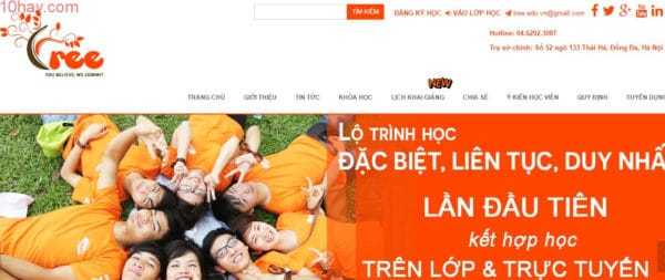 Tree là trung tâm dạy tiếng anh tại Hà Nôi, với phương pháp dạy tiếng anh giao tiếp mới hoàn toàn áp dụng cả online lẫn offline. Với nhiều giảng viên là chuyên gia truyền cảm hứng cho bạn học tiếng anh một cách tự nhiên nhất. Tận dụng khá tốt thời gian, không gian tạo sự thoãi mái tự tin trong quá trình học. Nếu bạn ở Hà Nội thì hãy tham gia để thấy sự khác biệt với các trung tâm khác. Có rất nhiều học viên đánh giá cao về khóa học tại trung tâm này.